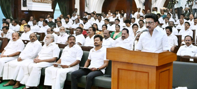 தமிழக சட்டசபையில் இன்று ஆளுநர் உரையை ஆர். என். ரவியால் படிக்க முடியவில்லை. இதனால் அவர் வந்த சில நிமிடங்களில் வெளியேறினார்.இந்தப் பிரச்சனைகளை தவிர்க்க ஆண்டின் தொடக்கத்தில் ஆளுநர் உரை என்ற நடைமுறையை விலக்கிடும் வகையில் அரசமைப்புச் சட்டத்தைத் திருத்துவதற்கான முயற்சிகளை இந்தியா முழுவதும் இருக்கும் ஒத்த கருத்துகளைக் கொண்ட அரசியல் கட்சிகள் துணையோடு நாடாளுமன்றத்தில் திமுக முன்னெடுக்கும்” என தமிழக முதல்வர் மு.க.ஸ்டாலின் தெரிவித்தார்.