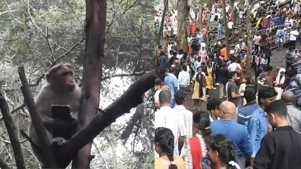 கொடைக்கானல் மலையில் உள்ள குணா குகை மிகவும் புகழ் பெற்ற சுற்றுலா தலமாக மாறி வருகிறது. ஏற்கனவே கமல் நடித்த குணா படத்திற்கு பிறகு கேரளாவில் இருந்து வெளியான மஞ்சுமா பாய்ஸ் படத்திற்கு பிறகு மேலும் புகழ்பெற்றது இங்கு சுற்றுலா பயணிகள் குவிந்த வண்ண உள்ளனர். அங்கு குரங்குகளும் ஏராளமாக நடமாடுகின்றன. சுற்றுலா பயணி ஒருவருடைய கைப்பையை குரங்கு பறித்து சென்றது அதிலிருந்த செல்போனை வைத்து ஏதாவது செய்ய முடியுமா என்று அது நீண்ட நேரம் முயற்சித்தது இந்த வீடியோ வைரலாகி உள்ளது