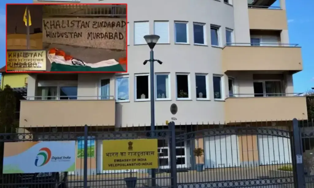தூதரகத்திற்குள் அத்துமீறி நுழைந்த மர்ம நபர்கள் இந்திய தேசிய கொடியை அகற்றியுள்ளனர். மேலும், தூதரகத்தின் மீது தாக்குதல் நடத்தியுள்ளனர்.