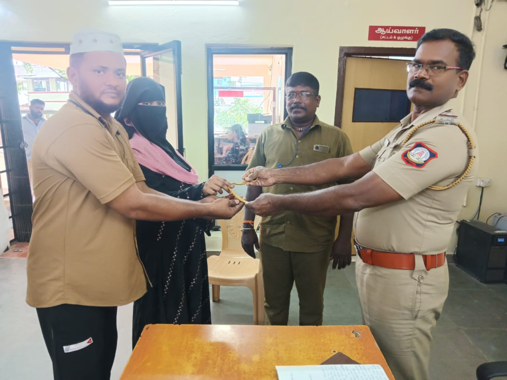 இதையடுத்து மகளுடன் தாம்பரம் போலீஸ் நிலையம் சென்ற சாகுல் ஹமீதிடம் ஆட்டோ டிரைவர் கோடீஸ்வரன் முன்னி லையில் போலீசார் 9 பவுன் நகையை ஒப்படைத்தனர். நகையை போலீஸ் நிலையத்தில் நேர்மையுடன் ஒப்படைத்த கோடீஸ்வ ரனை தாம்பரம் போலீஸ் உதவி கமிஷனர் நெல்சன் மற்றும் போலீசார்