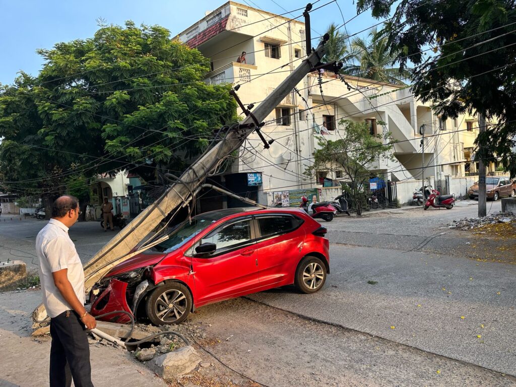 சிட்லபாக்கத்தில் கார் மோதி மின்கம்பம் கீழே சாய்ந்தது அதனை அகற்ற கவுன்சிலர் ஜெகன் உடனடியாக நடவடிக்கை எடுத்தார்