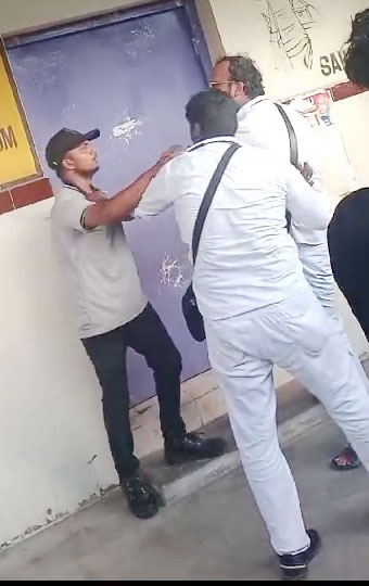 செங்கல்பட்டுவில் இருந்து சென்னை கடற்கரை சென்ற மின்சார ரெயிலில் முதல்வகுப்பு பெட்டியில் லோகேஷ்(37) என்பவர் பயணித்துள்ளார்.அப்போது தாம்பரம் வருமுன்பாக பெண் டிக்கெட் பரிசோதகர் பிரித்தி சோதனை செய்தபோது முதல் சாதாரண பெட்டியில் பயணம் செய்யும் டிக்கட் மட்டும் எடுத்தது தெரிய வந்தது, இதனால் தாம்பரத்தில் அபராத தொகை வசுலிக்க கூட்டிச்சென்ற நிலையில் தப்பியோடியுள்ளார், பெண் டிக்கெட் பரிசோதகர் பிடிக்க சொல்லி குரல் எழுப்பியதால் அங்கு டீ குடித்துக்கொண்டு இருந்த பேனிஷ் என்கிற டி.டி.ஆர் உள்ளிட்ட இருவர் பிடித்துள்ளனர், அப்போது பேனிசை லோகேஷ் தாக்கியுள்ளார், பதிலுக்கு பேனிசும் தாக்க அங்கிருந்த பொதுமக்கள் யாரும் தடுக்காமல் வேடிக்கை பார்த்துள்ளனர்,பிடிப்பட்ட லோகேசை தாம்பரம் இருப்பு பாதை போலீசில் ஒப்படைத்த நிலையில் அவர் அபராதம் செலுத்தினார்,மேலும் லோகேஷ் குறித்து விசாரித்து எழுதிவாங்கிய போலீசார் இருத் தரப்பிலும் சமாதனமாக போவதாக தெரிவித்ததன் பேரில் அனுப்பிவைத்தனர்,அதே வேளையில் பேனிஷ் கை மணிக்கட்டில் எலும்பு முறிவு ஏற்பட்ட நிலையில் ரெயில்வே மருத்துவமனையில் சிகிச்சை பெற்ற நிலையில் மீண்டும் காவல் நிலையத்தில் புகார் அளித்துள்ளார்,அதே நேரத்திலஇருவரும் ஒருவரை ஒருவர் தாக்கிக்கொள்ளும் காட்சியை செல்போனில் ஒளிப்பதிவு செய்து சமுக வலைத்தளத்தில் பதிவிட்ட நிலையில் அந்த காட்சிகள் வைரலாக பரவிவருகிறது…