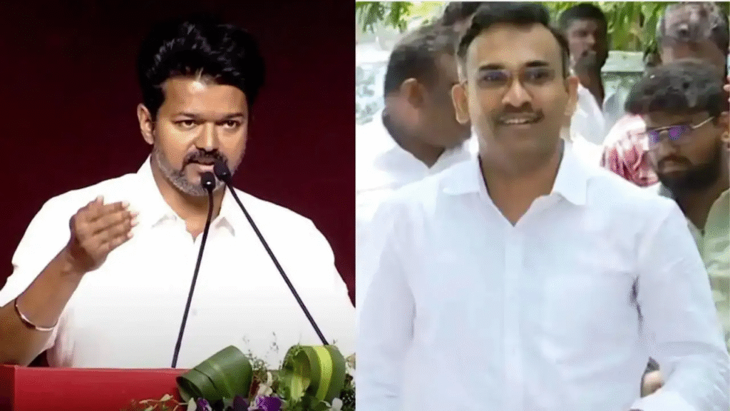 தனது செல்வாக்கு, பாஜக தொடர்புகளை பயன்படுத்தி தவெகவிற்கு தேர்தல் ஆணையத்தில் பதிவு செய்ய இவர் உதவியதால் உயர் அதிகாரிகளின் கோபத்திற்கு உள்ளாகி, தனது பதவியை ராஜினாமா செய்தார்.